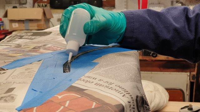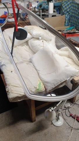The winter is not a good time to do this, as the bonder needs ideally about 20 deg.C to harden. The bonder absolutely stinks so this cannot be done in any living areas, although the canopy can be moved indoors once it has gone off and the odour has diminished.