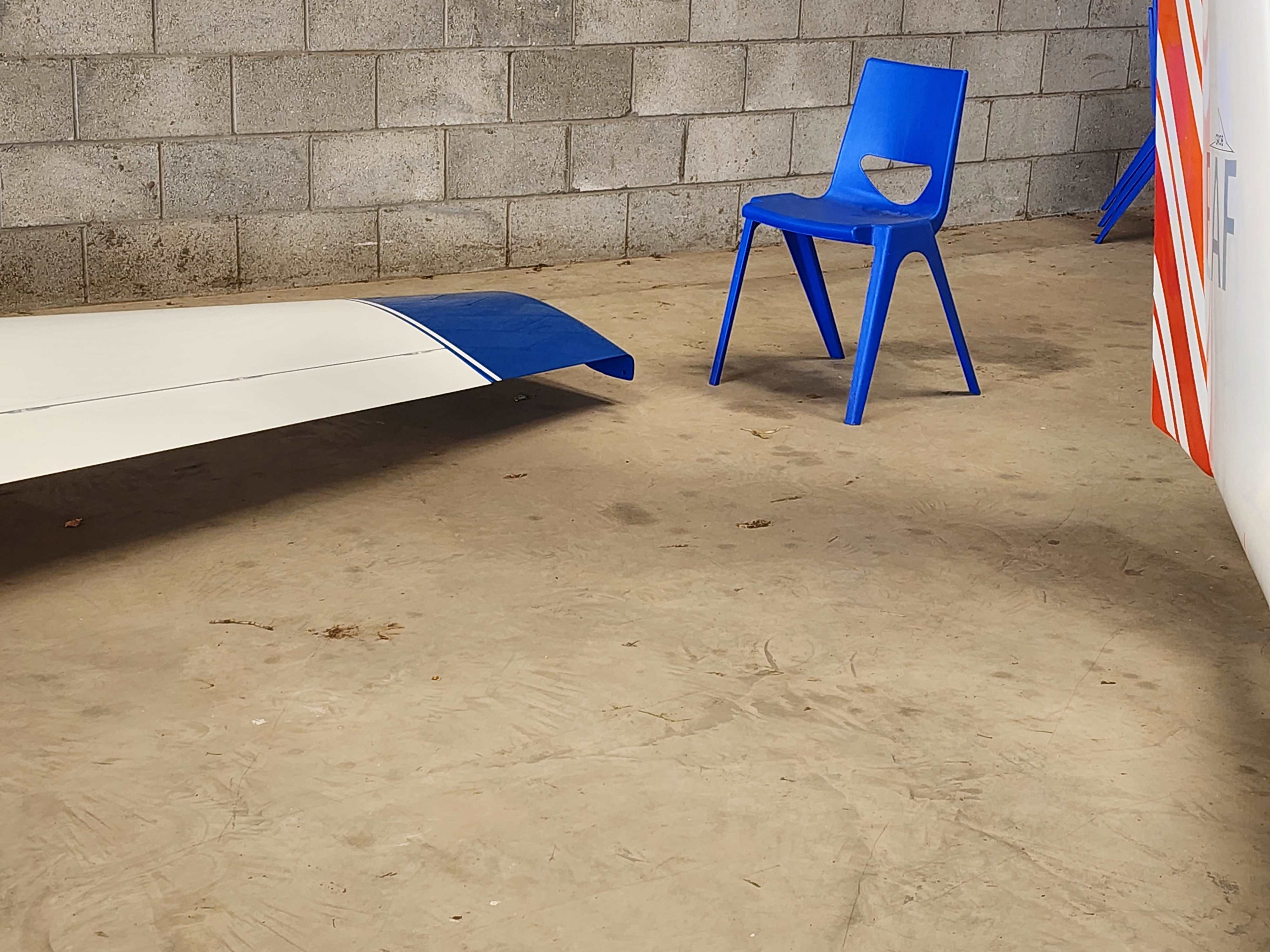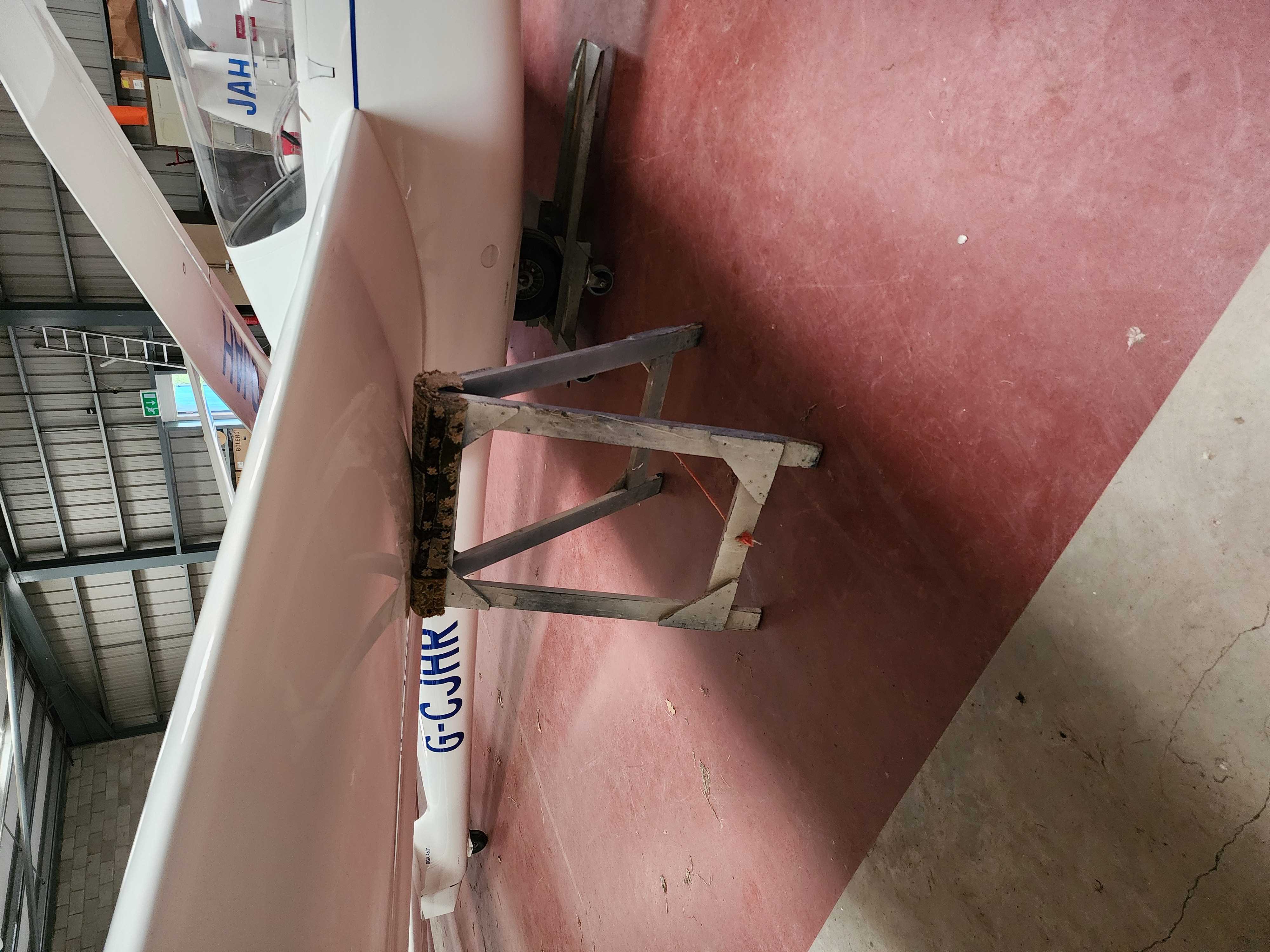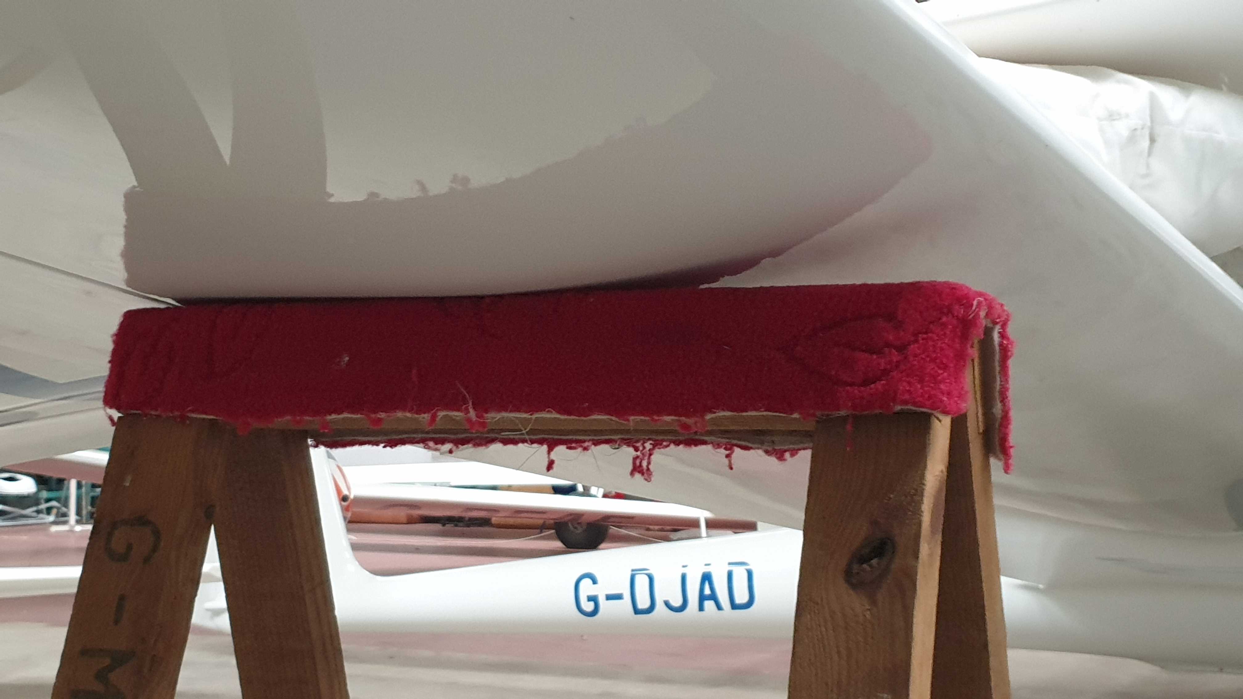 Please do not wedge trestles tightly under wings in the hangar; they can cause dents in the wings. Especially so with the wooden trestles that only have a thin layer of carpet to spread the load. The two new, yellow metal wing stands are much better padded, better to use them whenever possible.